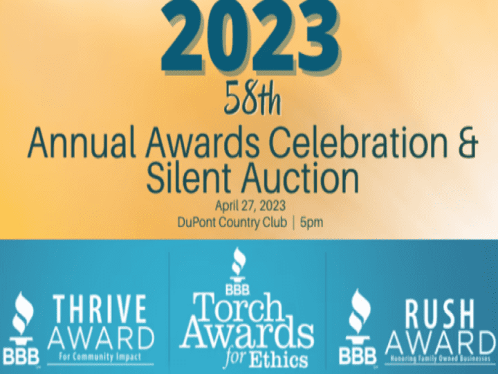 On April 27, 2023 BBB Delaware will honor 5 companies with their business ethics awards (Torch, Rush and Thrive). In addition to the prestigious business awards, BBB will shine a spotlight on two students with the Student Ethics Scholarship presentation.