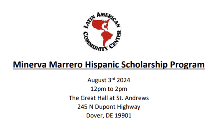The Latin American Community Center’s Minerva Marrero Hispanic Scholarship Program provides monetary scholarships for Hispanic Seniors in the State of Delaware to support their post-secondary education. The goal of the program is to open doors for Hispanic students to pursue greater opportunities, inspire pride in our people and heritage, motivate students to work hard, and encourage families to support them. The program was named after Minerva Marrero, one of the founders of the previous Hispanic Student Recognition Program. program. It is an honor to name this program after Minerva so that her legacy of advocating for the success of Hispanic students continues each and every day.