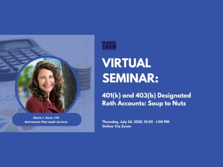 Maria T. Hurd, CPA, RPA will be presenting at the July Delaware SHRM Webinar Series!