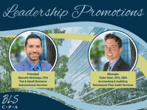 Valerie Middlebrooks, CPA, Tax & Small Business Practice Group Leader states, “Marcelo is simply one of the nicest, hardworking, and talented people I have ever worked with, and TSB is very lucky to have him as our newest Principal. In his time at BLS, he has significantly impacted the success of the international tax group and selflessly supported his clients and the Firm. Always striving to learn and improve, he is more than deserving of this promotion.”